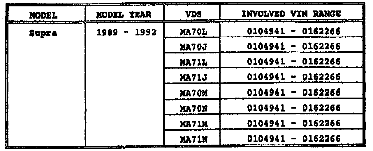 ^ A SUMMARY LISTING OF THE INVOLVED VEHICLES SOLD BY YOUR DEALERSHIP IS ENCLOSED. THIS LISTING MUST BE UTILIZED TO CALCULATE REPLACEMENT PARTS REQUIREMENTS BY MODEL. YOUR INITIAL PARTS ORDERS MUST NOT BE MORE THAN 5% OF YOUR INVOLVED VEHICLES. SUBSEQUENT ORDERS MUST BE CALCULATED TO MEET ACTUAL WEEKLY DEMAND REQUIREMENTS IN ORDER TO ENSURE CONTINUED GOOD AVAILABILITY OF PARTS.