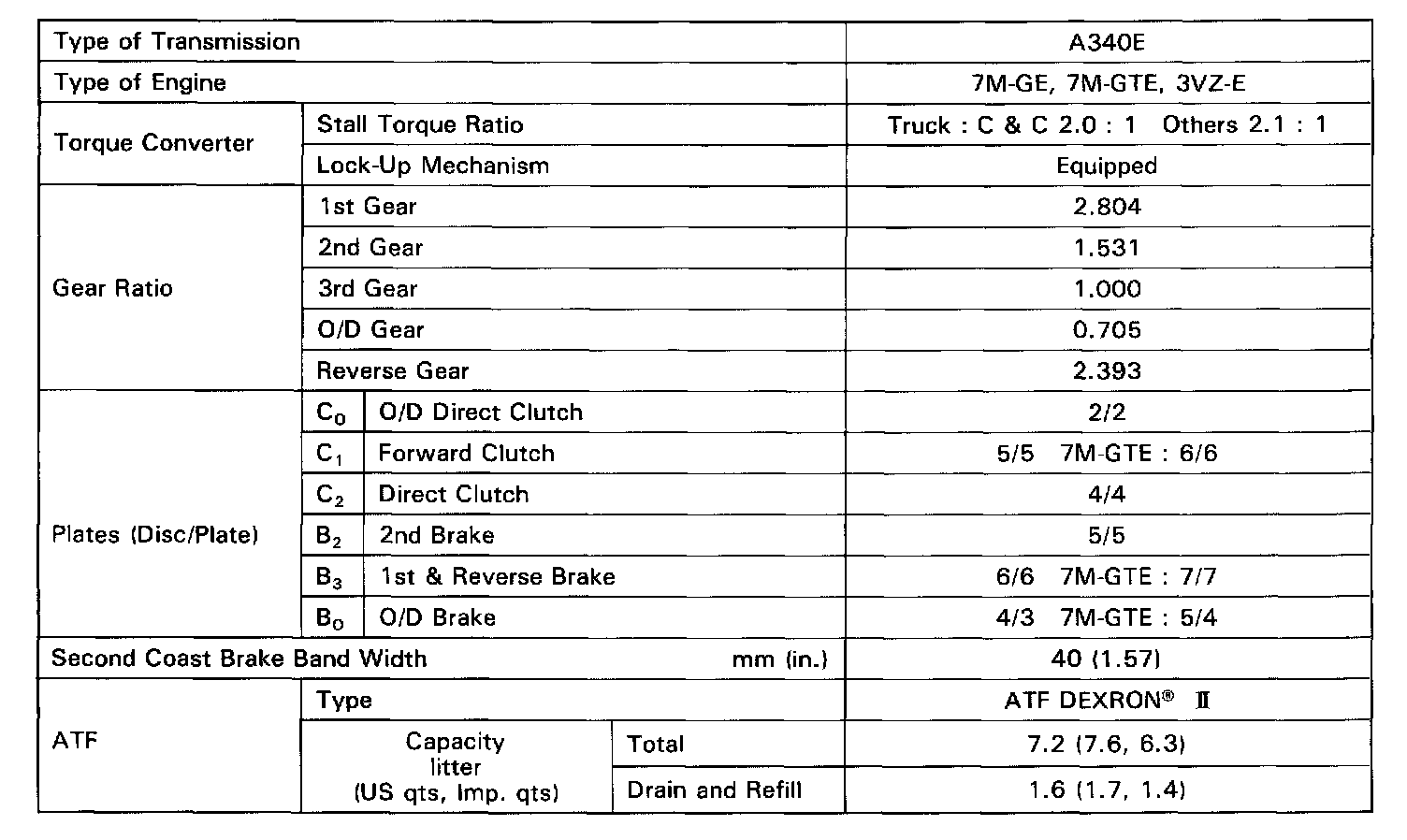 The A340E is a 4-speed, Electronic Controlled Transmission (hereafter called ECT) developed for use with high-performance engine. A lock-up mechanism is built into the torque converter.