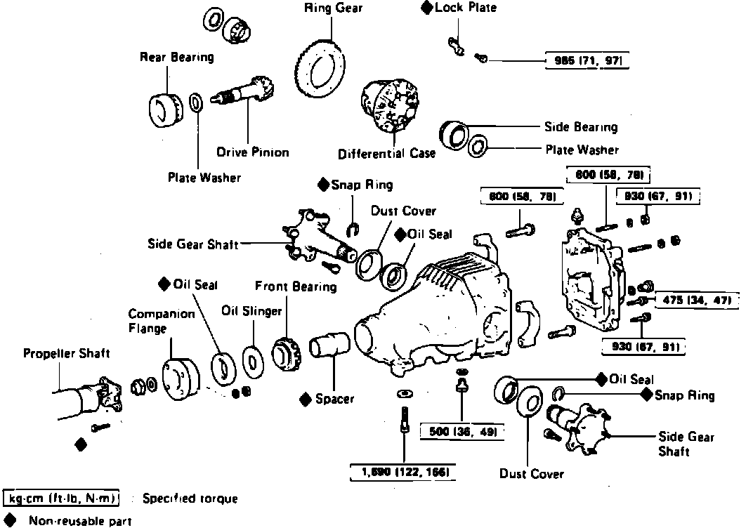 10. Remove pinion rear bearing using suitable puller, then the spacer.