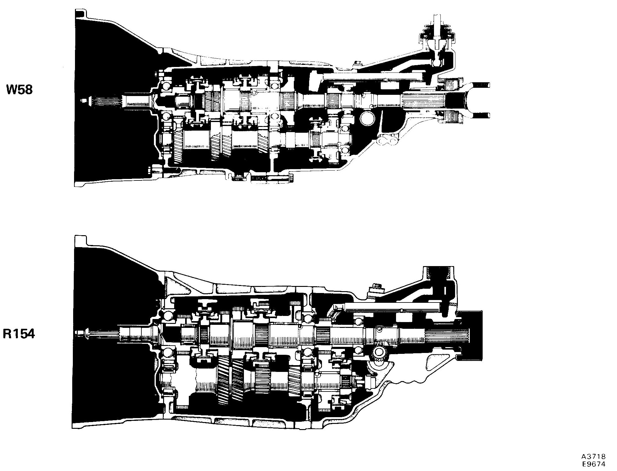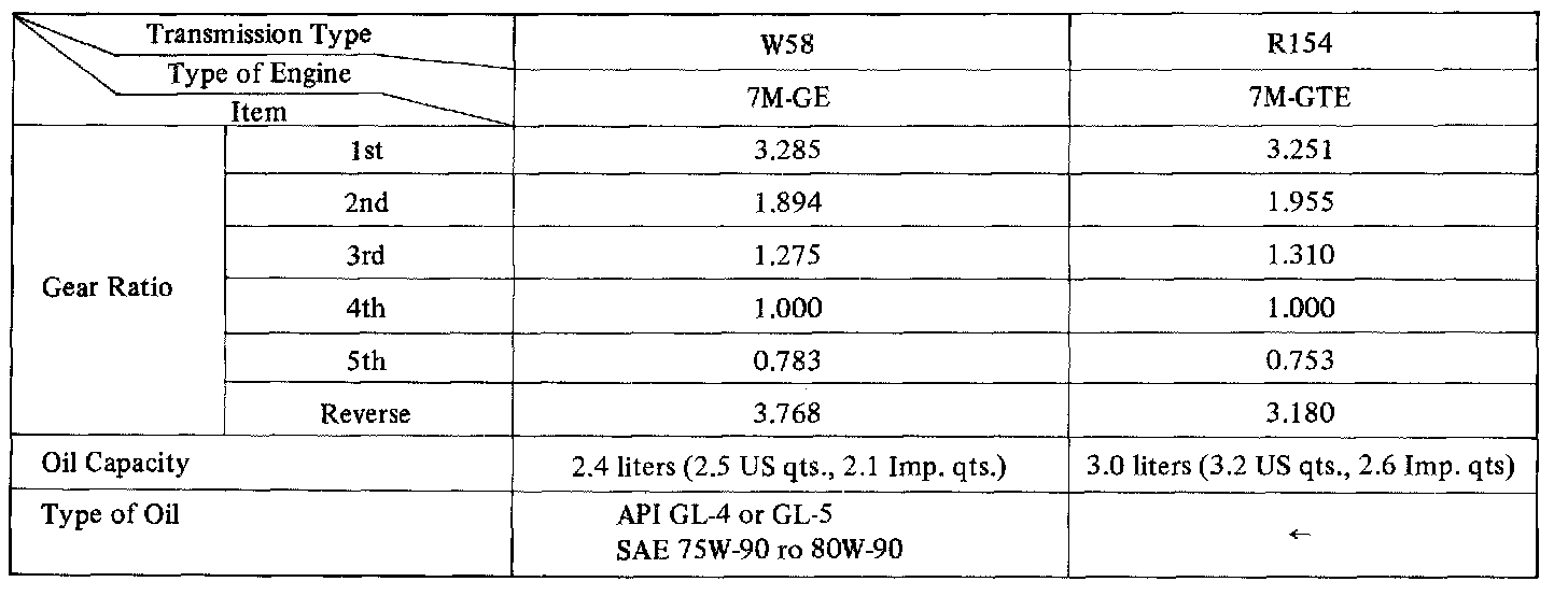 - Transmission types W58 and R154 are constant mesh synchronizers for forward gear and a sliding mesh reverse gear.