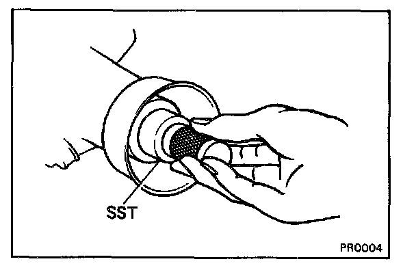 Remove the propeller shaft and insert SST into the extension housing.