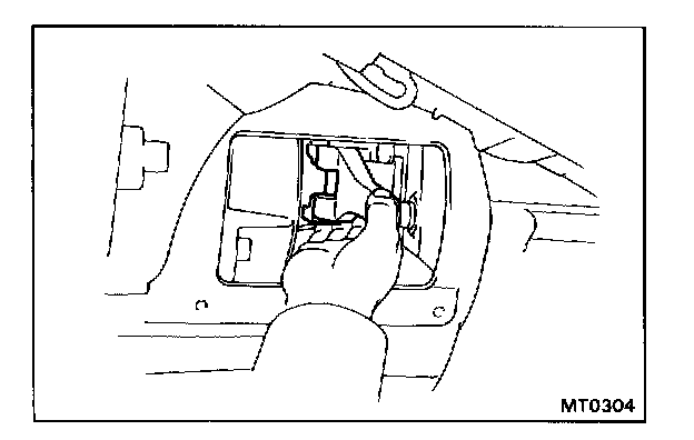 CAUTION: Work must be started after approx. 20 seconds or longer from the "LOCK" position and the negative (-) terminal cable is disconnected from the battery.