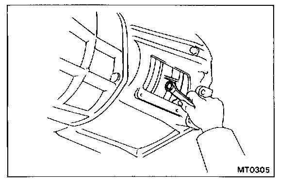 b. Pull out the release fork through the left clutch housing hole.