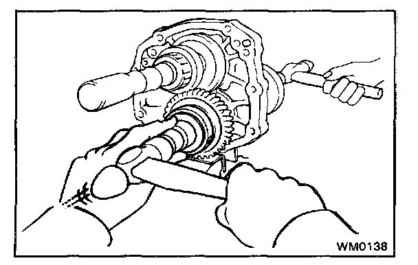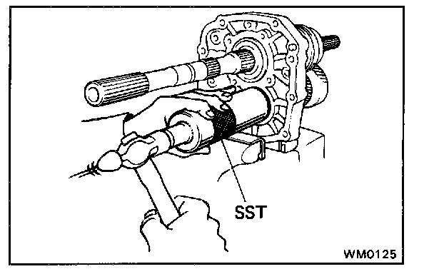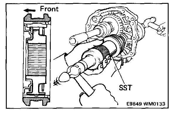Using SST, install the 5th gear and rear bearing.
