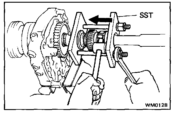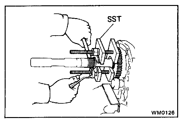 4. INSTALL REVERSE GEAR Using SST, install the reverse gear.