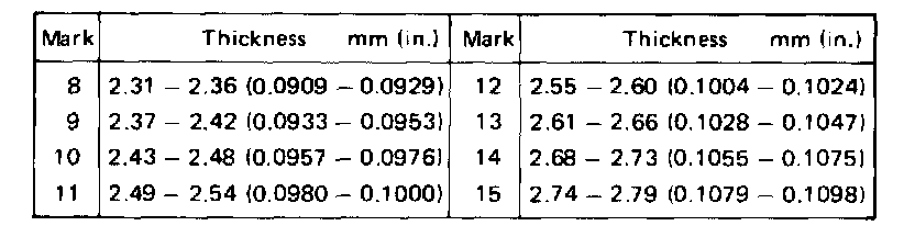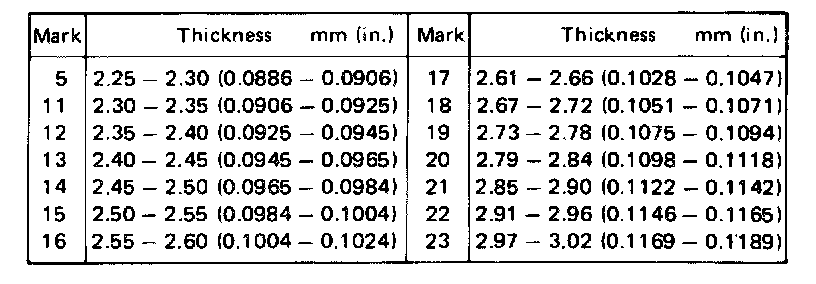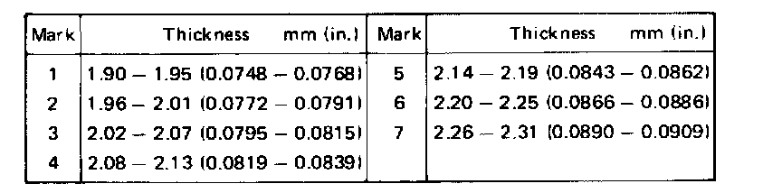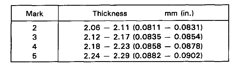 Standard clearance: 0.10 - 0.41 mm (0.0039 - 0.0161 in.)