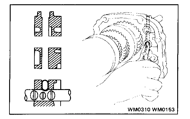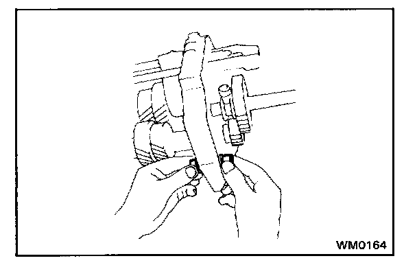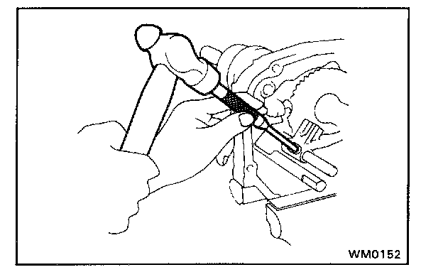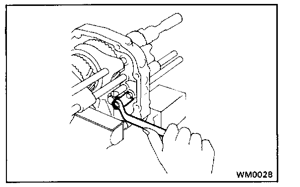 1. Push the pin, which was installed into the reverse shift arm hole, into the groove of No.3 shift fork shaft.