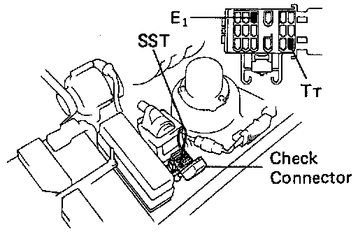 - Using a jumper wire, connect terminals Tt and E1 of the check connector.