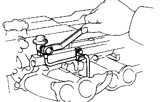 (c) Place the head on wooden blocks on a bench. If the cylinder head is difficult to lift off, pry with a screwdriver between the cylinder head and block projection.