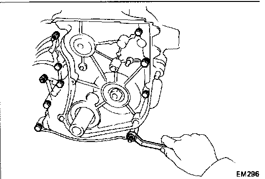 14. REMOVE TIMING BELT CASE WITH WATER PUMP