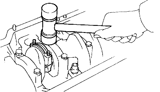 (c) Using a plastic-faced hammer, tap the rod bolts lightly and lift off the rod cap.