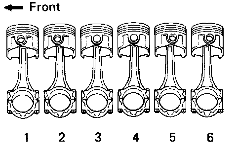 HINT: Keep the bearings inserted with the connecting rod and cap. Arrange the piston and connecting rod assemblies in correct order.