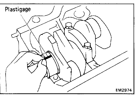 (f) Lay a strip of Plastigage across the crankshaft pin.