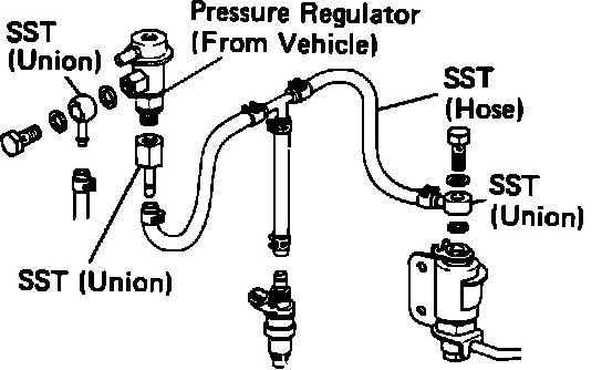 3. Attach the Fuel Pressure Regulator to the vehicle fuel return line with SST.