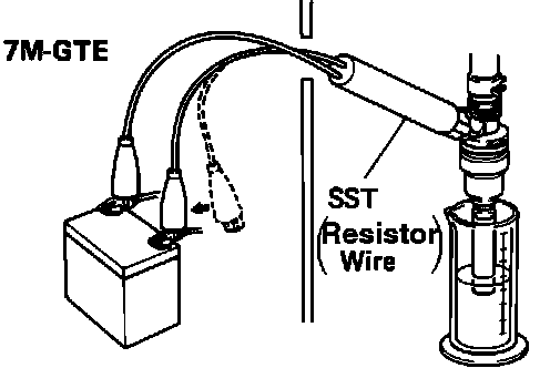 7. Connect a SST jumper wire with resistor, to the injector terminals and apply battery current to the injector for 15 seconds.