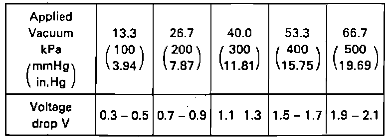 - Apply vacuum to the vacuum sensor in 13.3 kPa (1OO mmHg. 3.94 in.Hg) segments to 66.7 kPa (5OO mmHg, 19.69 in.Hg).