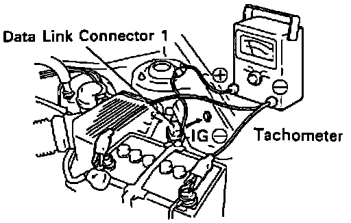 - Connect the test probe of a tachometer to terminal IG (-) of the data link connector 1.
