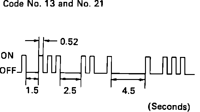 If no malfunction codes are stored in the ECU, the "CHECK ENGINE" light will flash ON and OFF two times per second repeatedly. In the event of a malfunction, the light will flash every 0.52 seconds to indicate the first digit of the diagnostic code. This will be followed by a 1.5 second pause and 0.52 second flashes to indicate the second digit of the code.