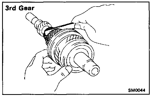 b. Remove the 4th gear, needle roller bearings, spacer and synchronizer ring.