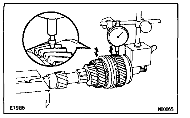 Using dial indicator, measure the oil clearance between the gear and shaft.
