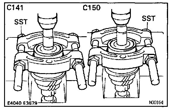 Using SST and a press, remove the rear ball bearing.