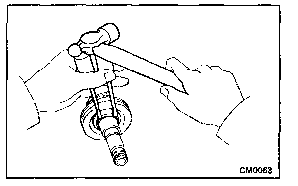 Using two screwdrivers and a hammer, tap out the snap ring.