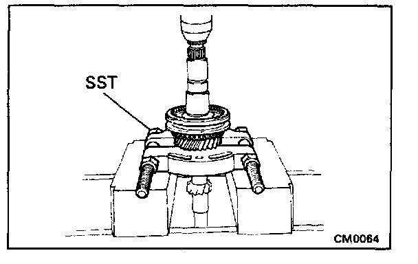 Using SST, a socket wrench and press remove the rear ball bearing.