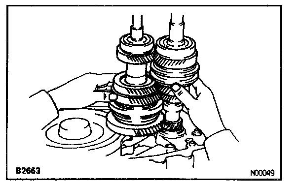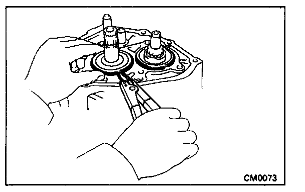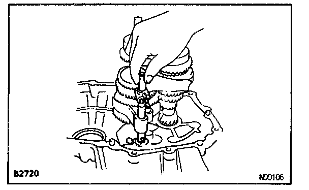 HINT: If it is difficult to install the snap rings, pull up the shafts.
