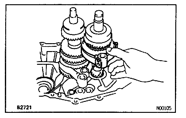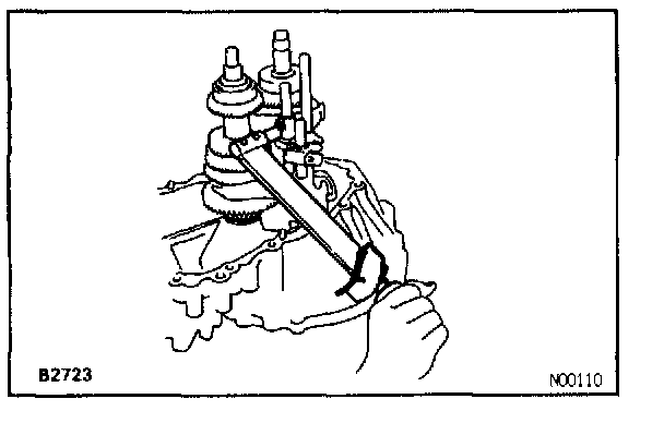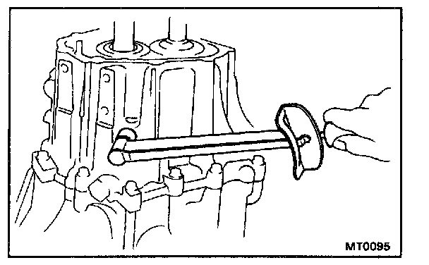 b. Install the No.1 fork shaft into the No.1 shift fork hole.