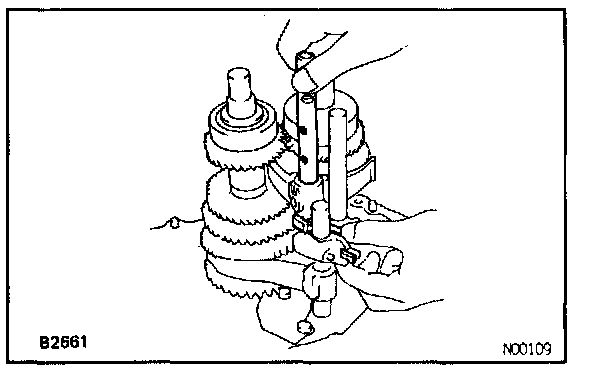 e. Install the No.2 fork shaft and the shift head.