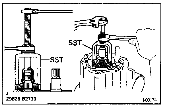 a. Support the tip of the input shaft with a spacer or such to raise the transaxle assembly.