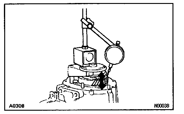 Using a dial indicator, measure the thrust clearance.
