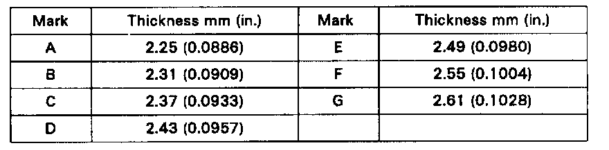 Standard clearance: 0.10 - 0.57 mm (0.0039 - 0.0224 in.)