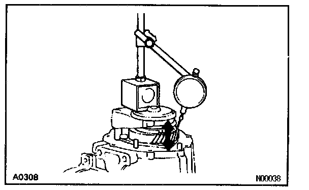 Using a dial indicator, measure the thrust clearance.