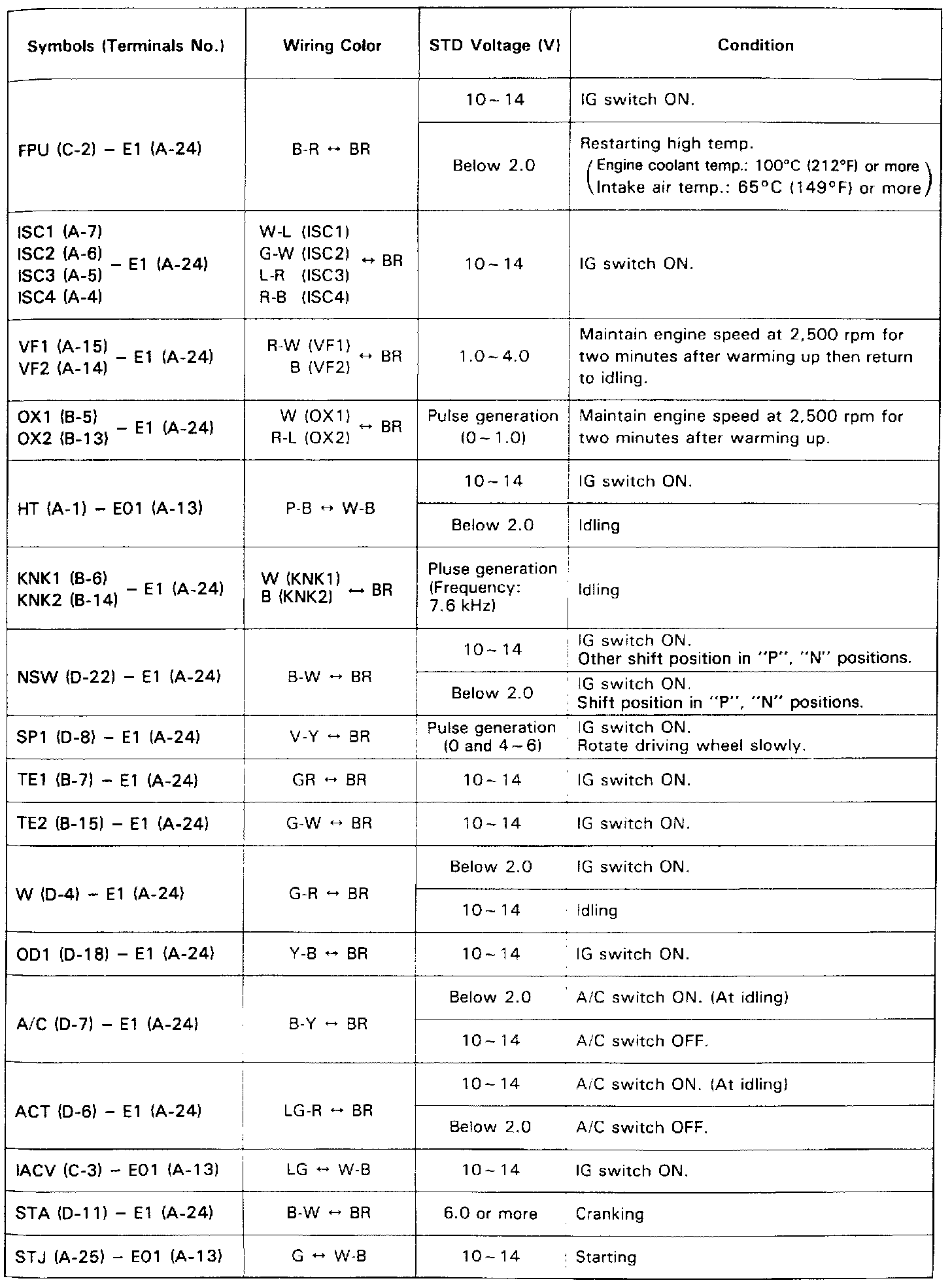 Standard Value of ECM Terminals