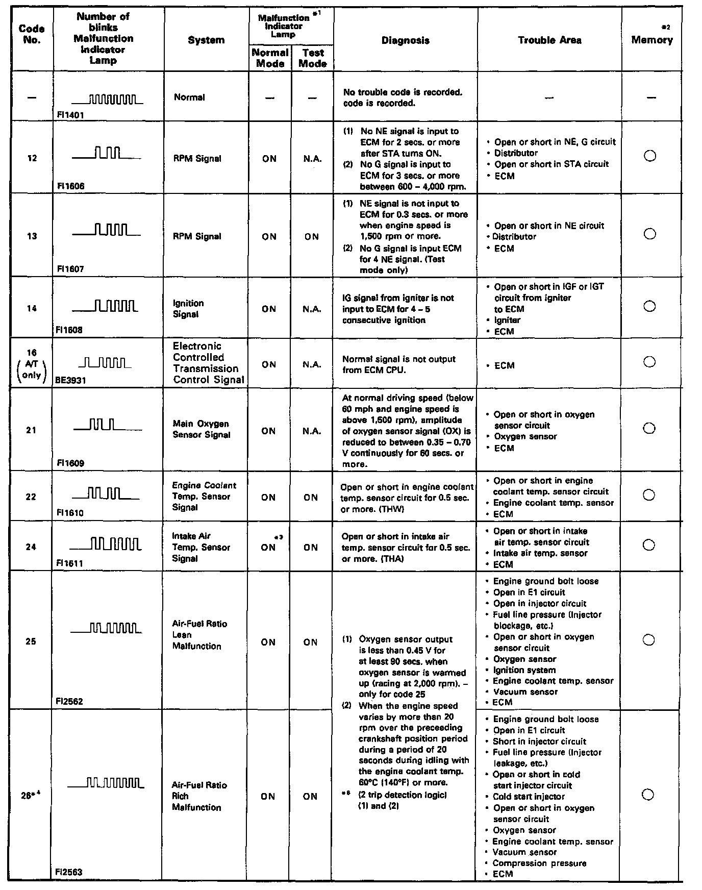 - If a malfunction is detected during the diagnostic code check1 refer to the circuit indicated in the table and turn to the corresponding page.