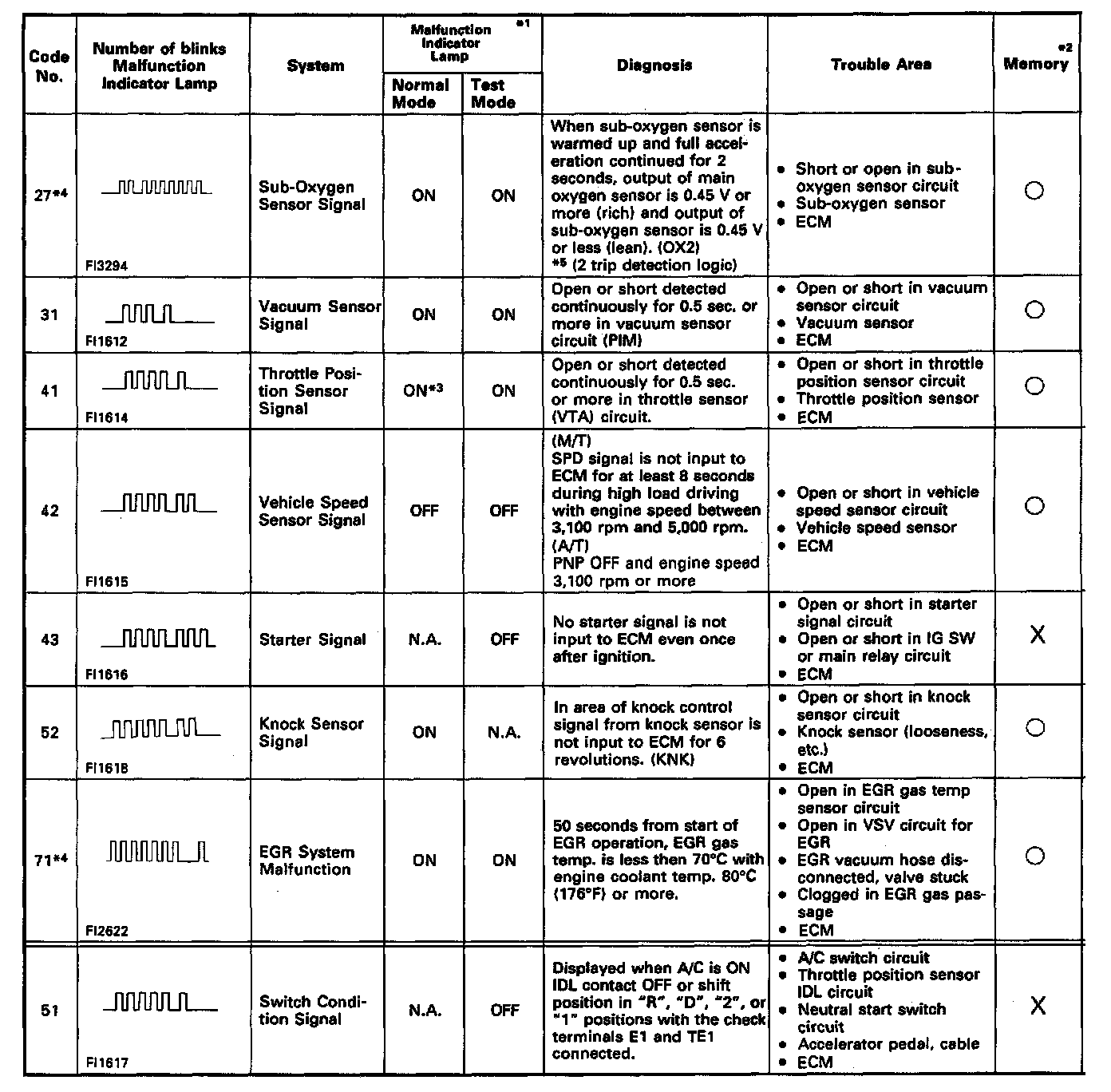 *4 Code 26, 27 and 71 is used only for California specifications.