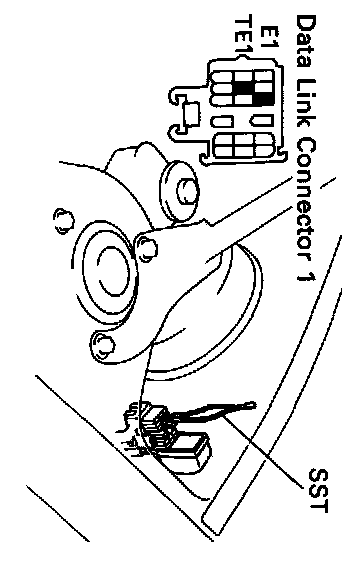 5. Using SST 09843-18020, connect terminals TE1 and E1 of the data link connector 1.