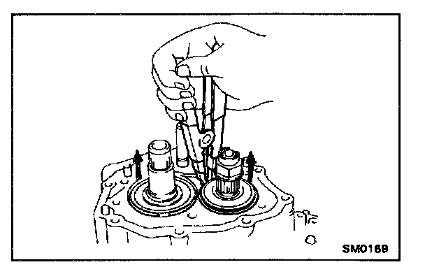 HINT : If it is difficult to remove the snap rings, pull up the shafts.