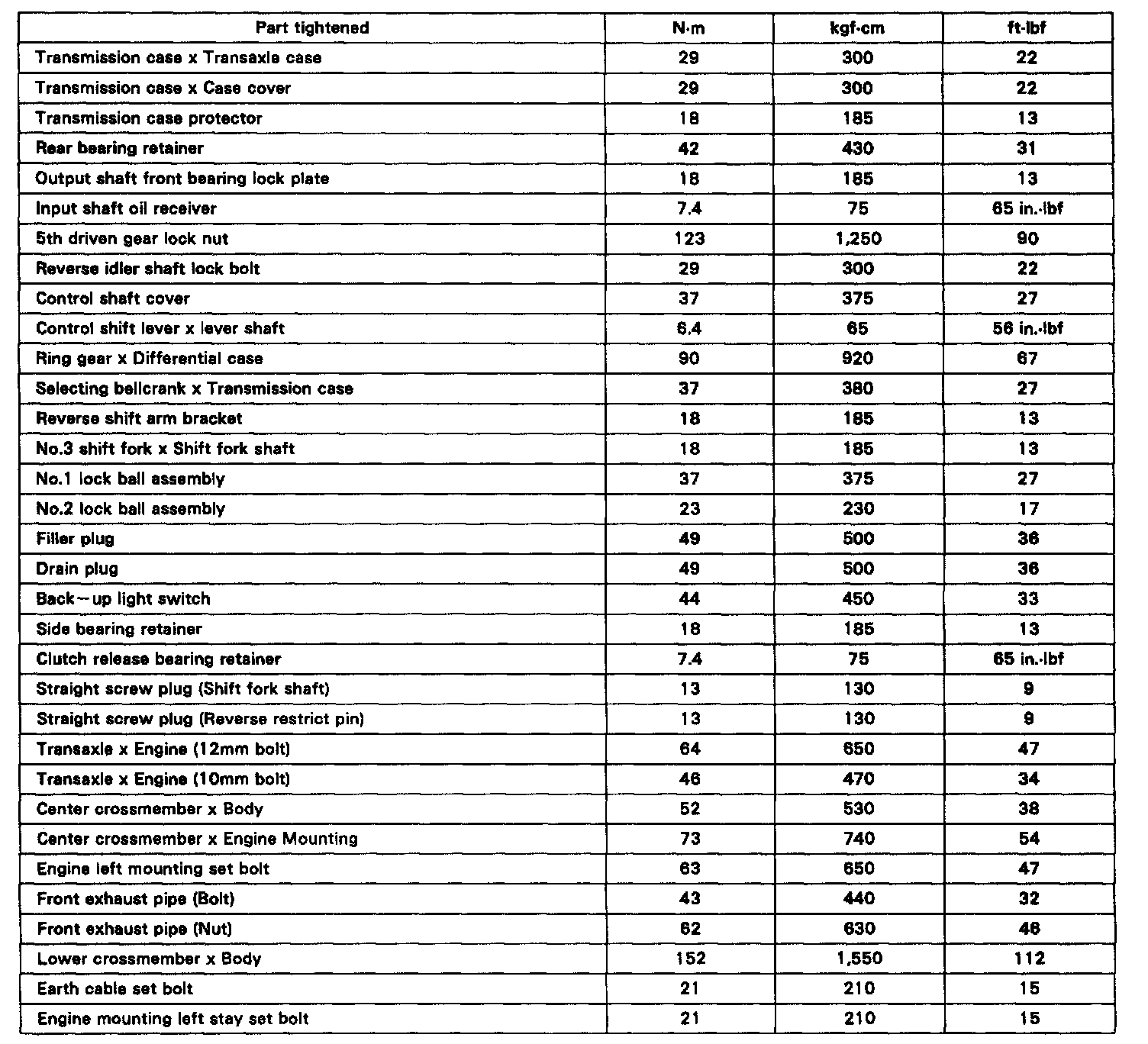 M/T Torque Data