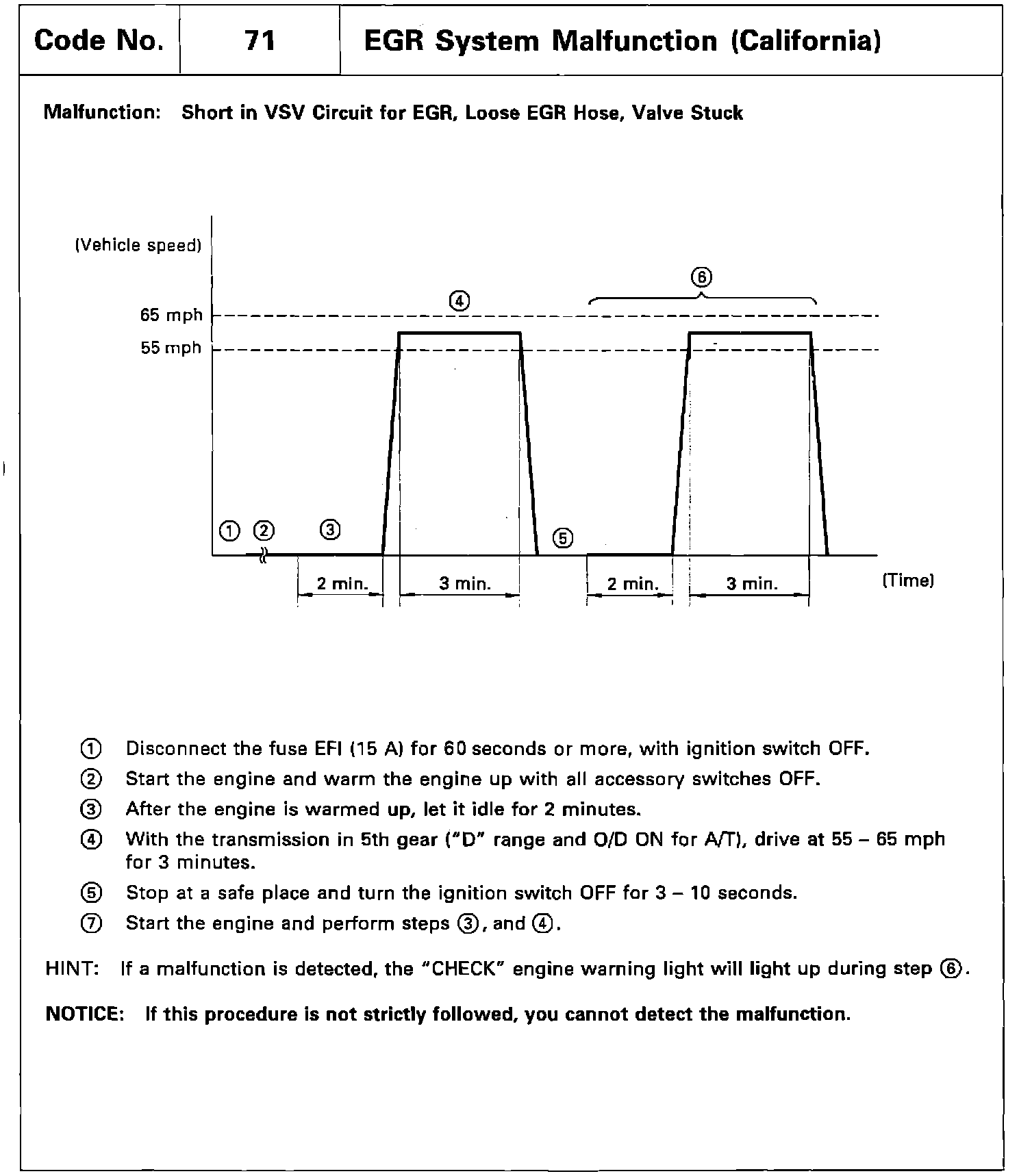 Code 71 Detection Driving Pattern, CA: