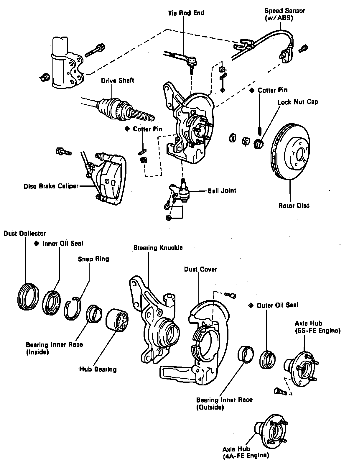 Fig. 5 Exploded View Of Axle Hub & Steering Knuckle.: