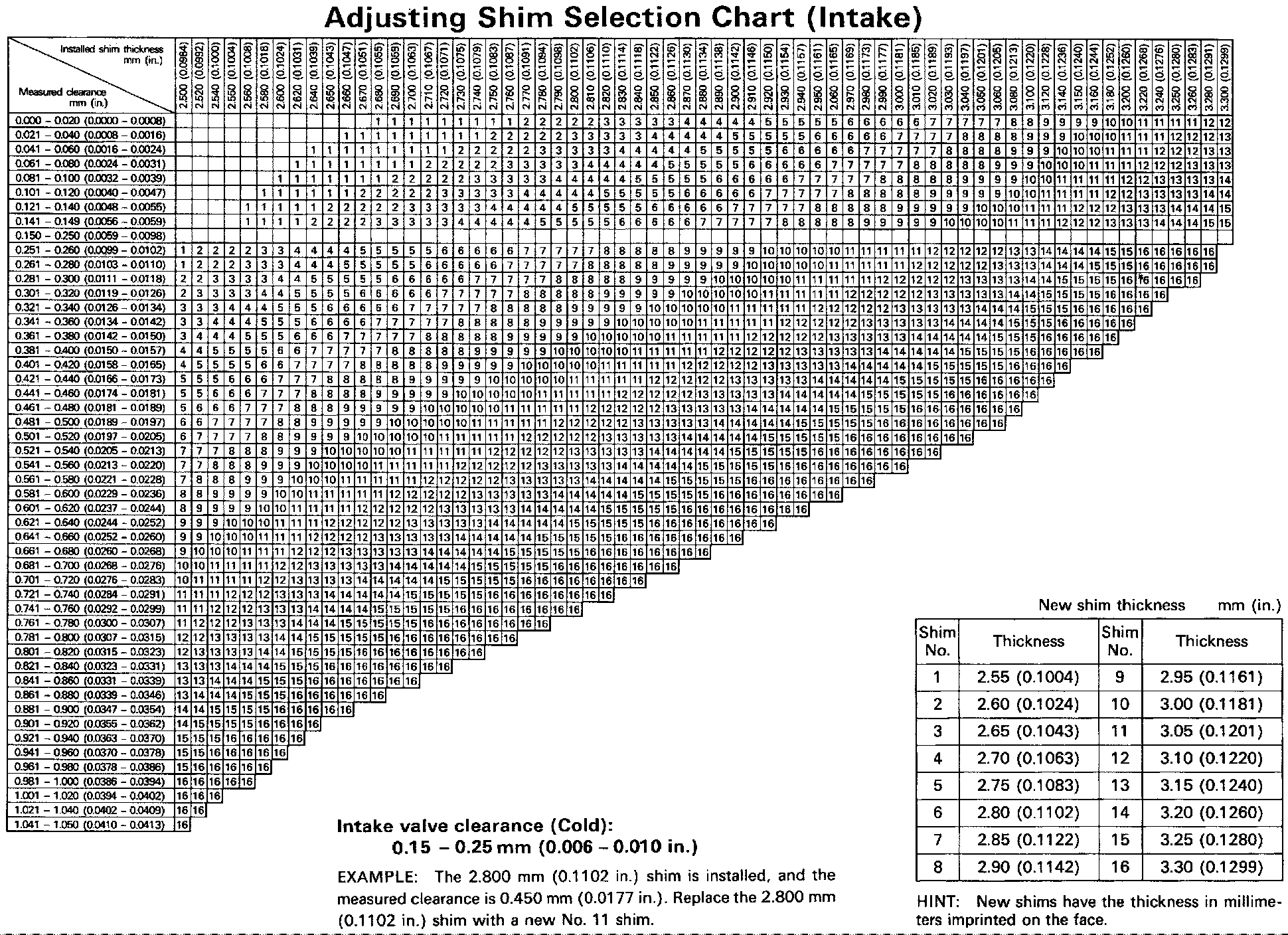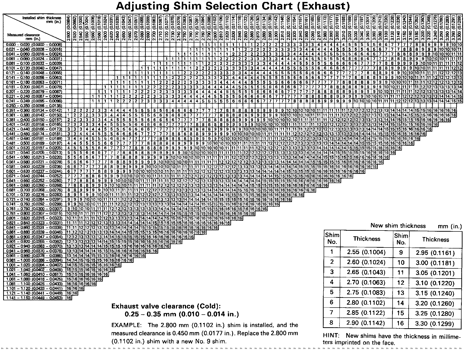 Adjusting Shim Selection Chart