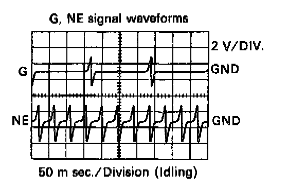 - During cranking or idling, check between terminals G1 and G(-), NE(+) and NE(-) of engine control module.