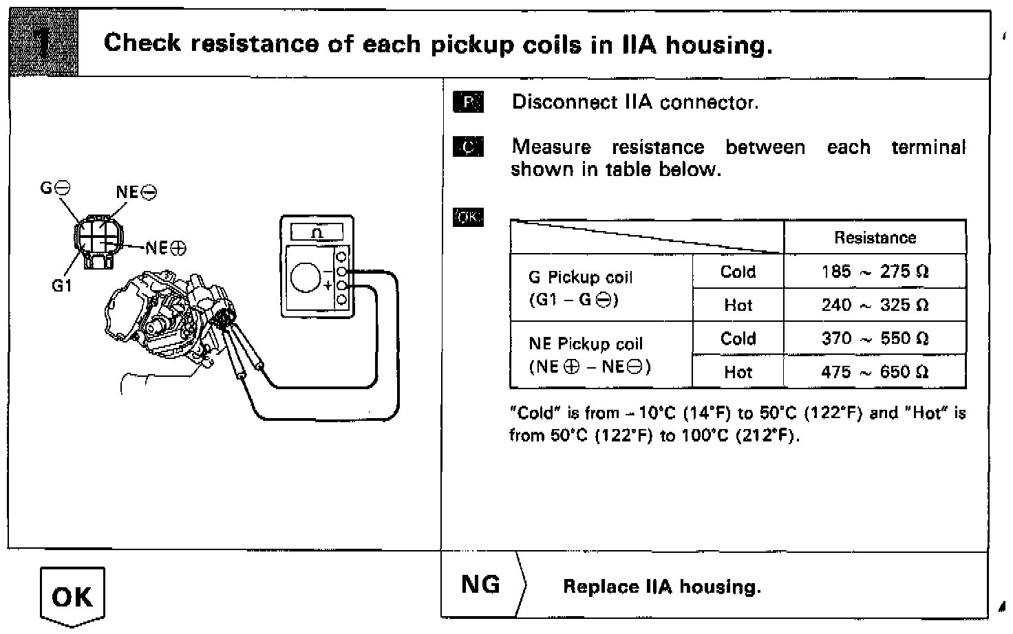 The IIA (Distributor) in the Engine Control System contains two pickup coils (G and NE).