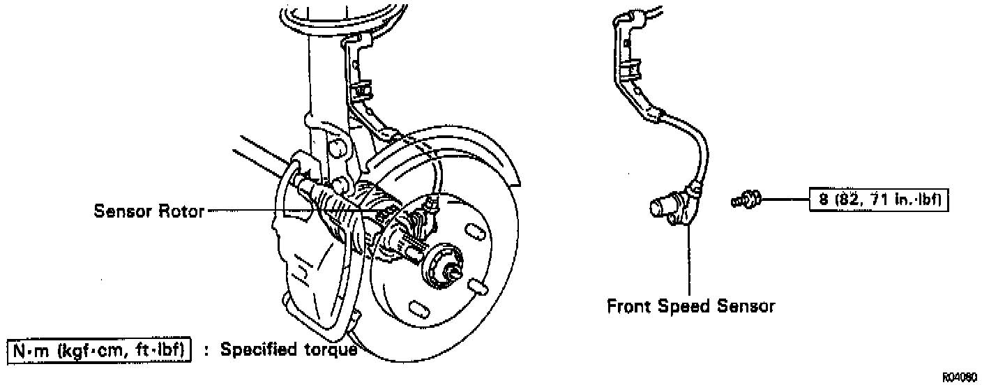 NOTE: Inspect front speed sensor and sensor rotor serrations by using an oscilloscope