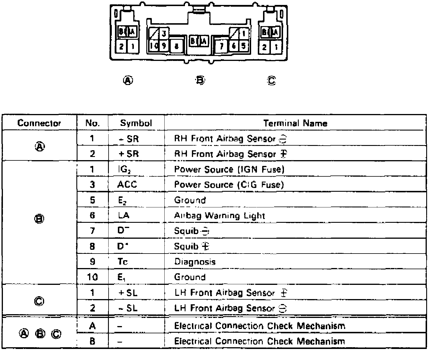 Fig. 28 Center Airbag Sensor Assembly Connector. Corolla: