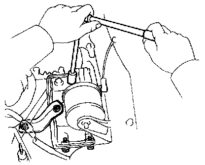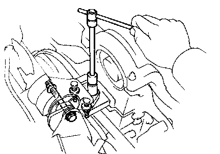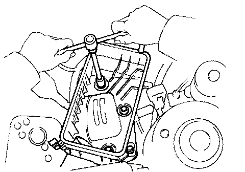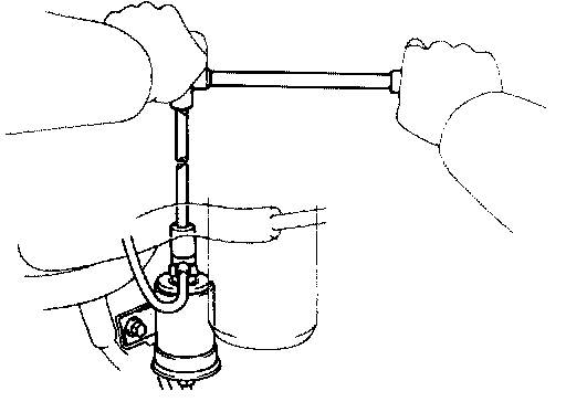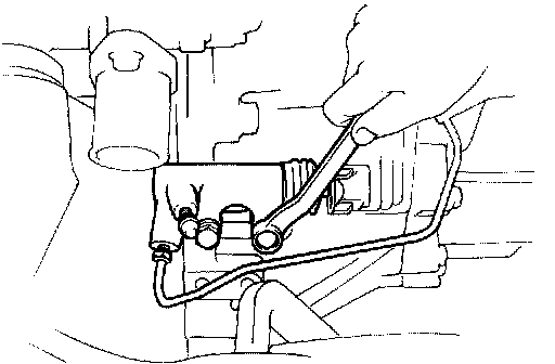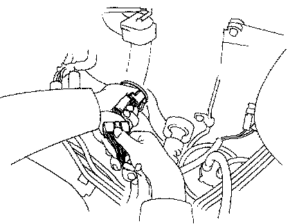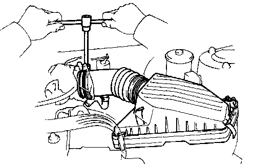 NOTICE: Be careful not to hit the power steering gear housing and throttle position sensor.