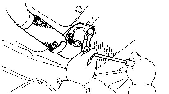 20. (M/T) REMOVE CLUTCH RELEASE CYLINDER WITHOUT DISCONNECTING PIPE AND HOSE.