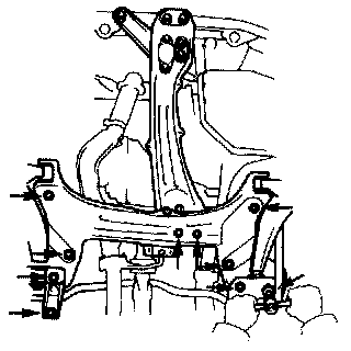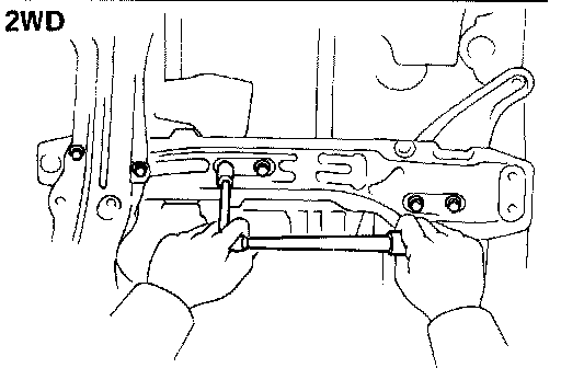 Remove the five bolts (2WD) or four bolts (4WD), insulators and member.